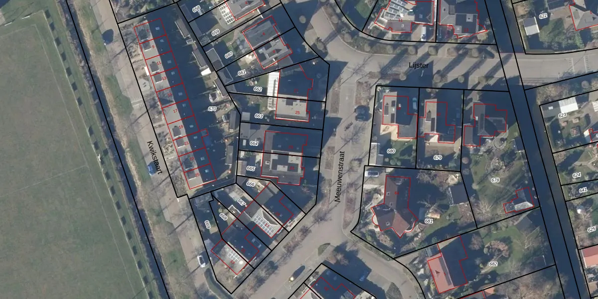 Het perceel waarop Meeuwenstraat 23 staat heeft een oppervlakte van 261 m². Dit is een middelgroot perceel. De perceeloppervlakte wordt geregistreerd door het Kadaster. Gedetailleerde informatie over de maten van dit perceel kunt u vinden in het rapport Kadastrale kaart met maatvoering van Meeuwenstraat 23.