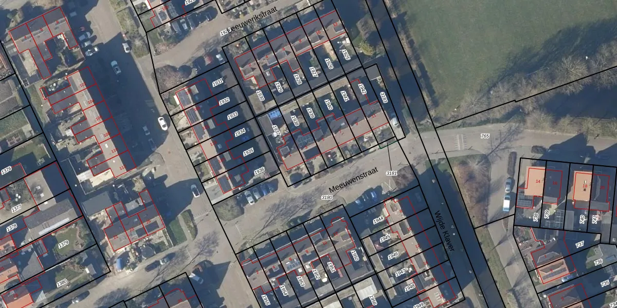 Het perceel waarop Meeuwenstraat 3 staat heeft een oppervlakte van 150 m². Dit is een middelgroot perceel. De perceeloppervlakte wordt geregistreerd door het Kadaster. Gedetailleerde informatie over de maten van dit perceel kunt u vinden in het rapport Kadastrale kaart met maatvoering van Meeuwenstraat 3.