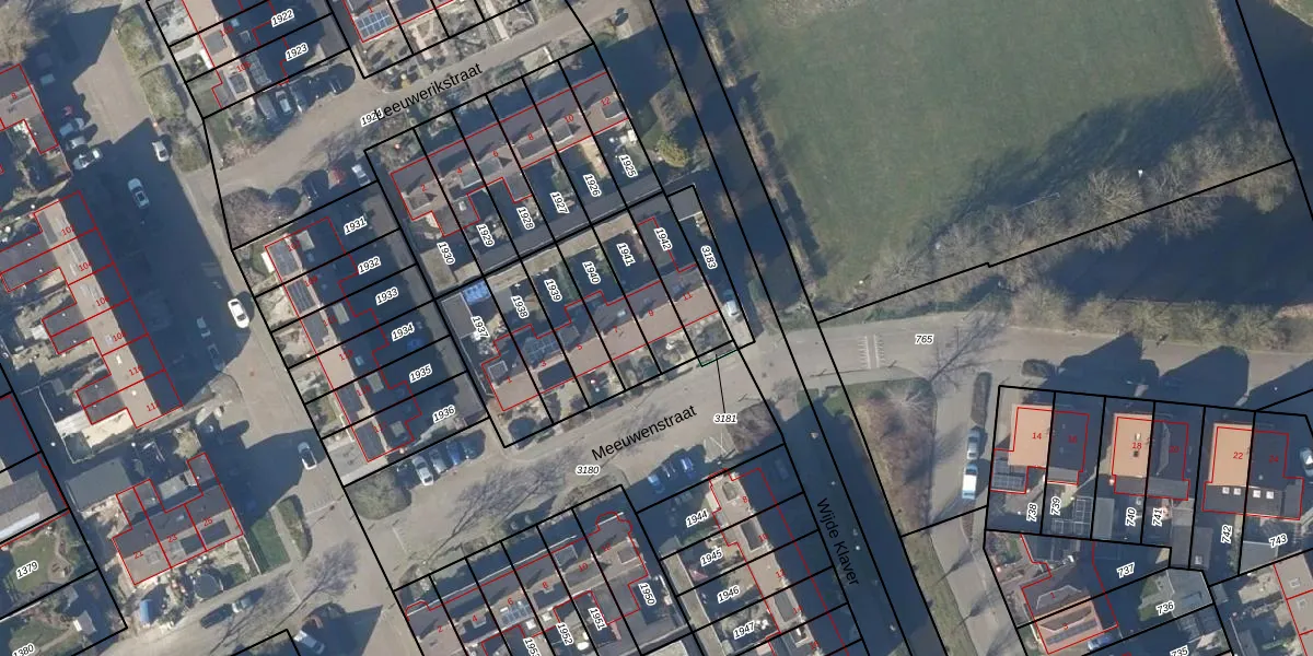 Gebruik de zoekbalk of klik op een perceel voor informatie over de adressen binnen dit perceel.