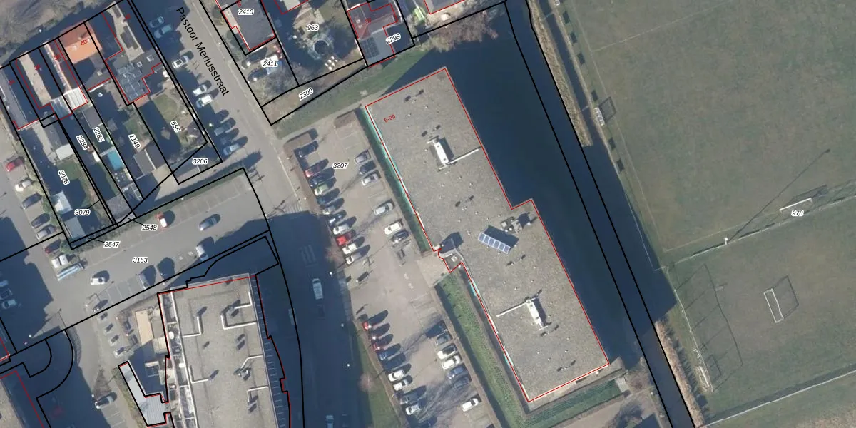 Het perceel waarop Pastoor Meriusstraat 45 staat heeft een oppervlakte van 3,2 ha. Dit is een zeer groot perceel. De perceeloppervlakte wordt geregistreerd door het Kadaster. Gedetailleerde informatie over de maten van dit perceel kunt u vinden in het rapport Kadastrale kaart met maatvoering van Pastoor Meriusstraat 45.