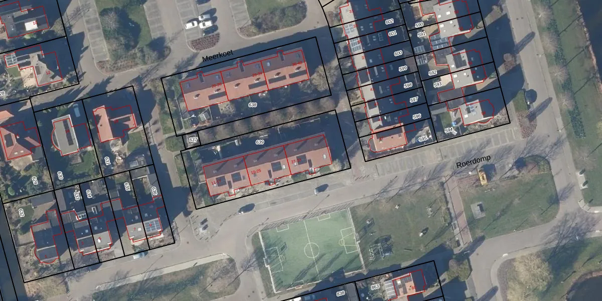 Het perceel waarop Roerdomp 29 staat heeft een oppervlakte van 1065 m². Dit is een zeer groot perceel. De perceeloppervlakte wordt geregistreerd door het Kadaster. Gedetailleerde informatie over de maten van dit perceel kunt u vinden in het rapport Kadastrale kaart met maatvoering van Roerdomp 29.