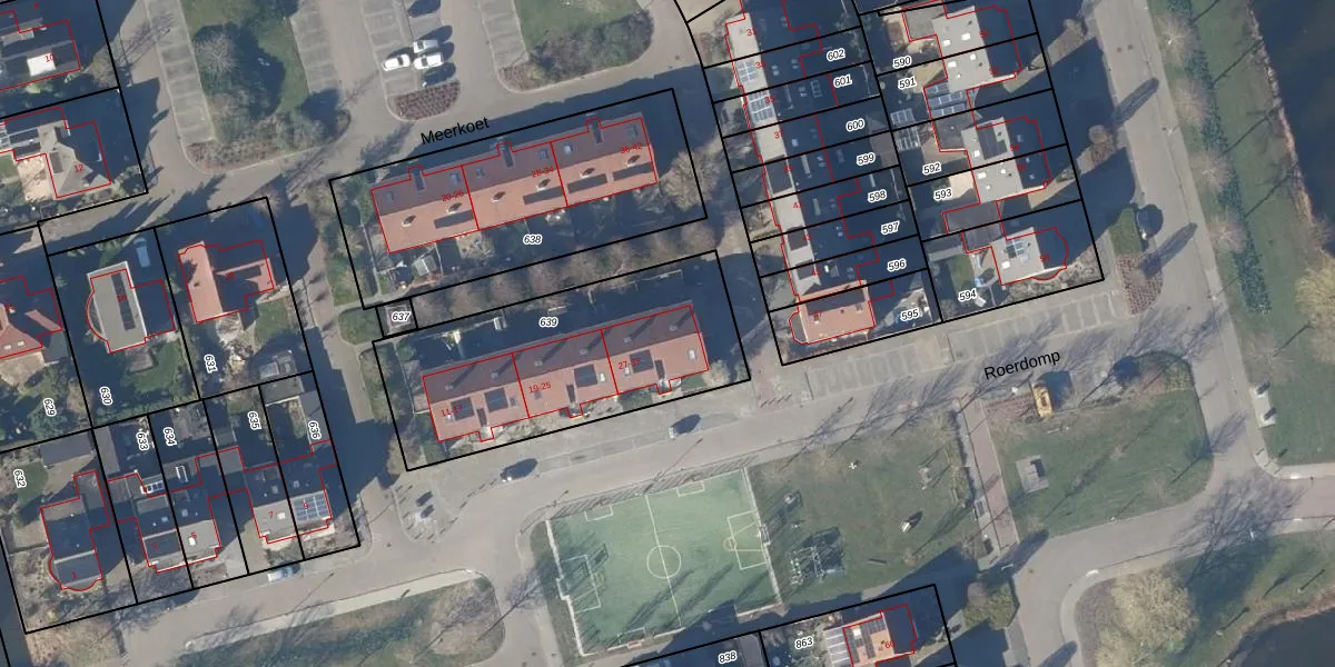 Het perceel waarop Roerdomp 31 staat heeft een oppervlakte van 1065 m². Dit is een zeer groot perceel. De perceeloppervlakte wordt geregistreerd door het Kadaster. Gedetailleerde informatie over de maten van dit perceel kunt u vinden in het rapport Kadastrale kaart met maatvoering van Roerdomp 31.