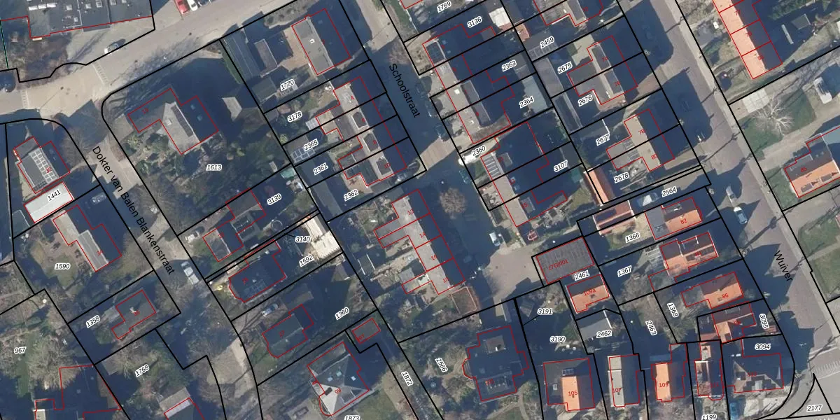 Het perceel waarop Schoolstraat 12 staat heeft een oppervlakte van 2,1 ha. Dit is een zeer groot perceel. De perceeloppervlakte wordt geregistreerd door het Kadaster. Gedetailleerde informatie over de maten van dit perceel kunt u vinden in het rapport Kadastrale kaart met maatvoering van Schoolstraat 12.