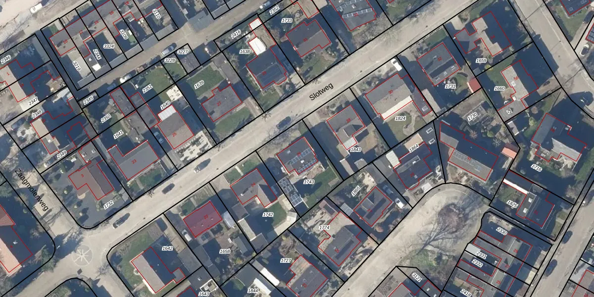 Het perceel waarop Slotweg 26 staat heeft een oppervlakte van 491 m². Dit is een groot perceel. De perceeloppervlakte wordt geregistreerd door het Kadaster. Gedetailleerde informatie over de maten van dit perceel kunt u vinden in het rapport Kadastrale kaart met maatvoering van Slotweg 26.