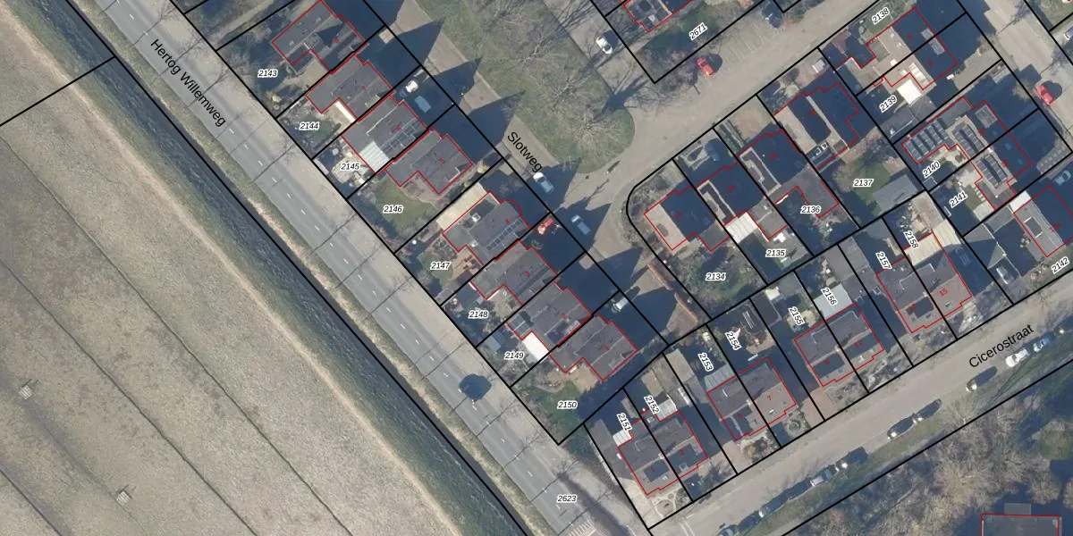 Gebruik de zoekbalk of klik op een perceel voor informatie over de adressen binnen dit perceel.