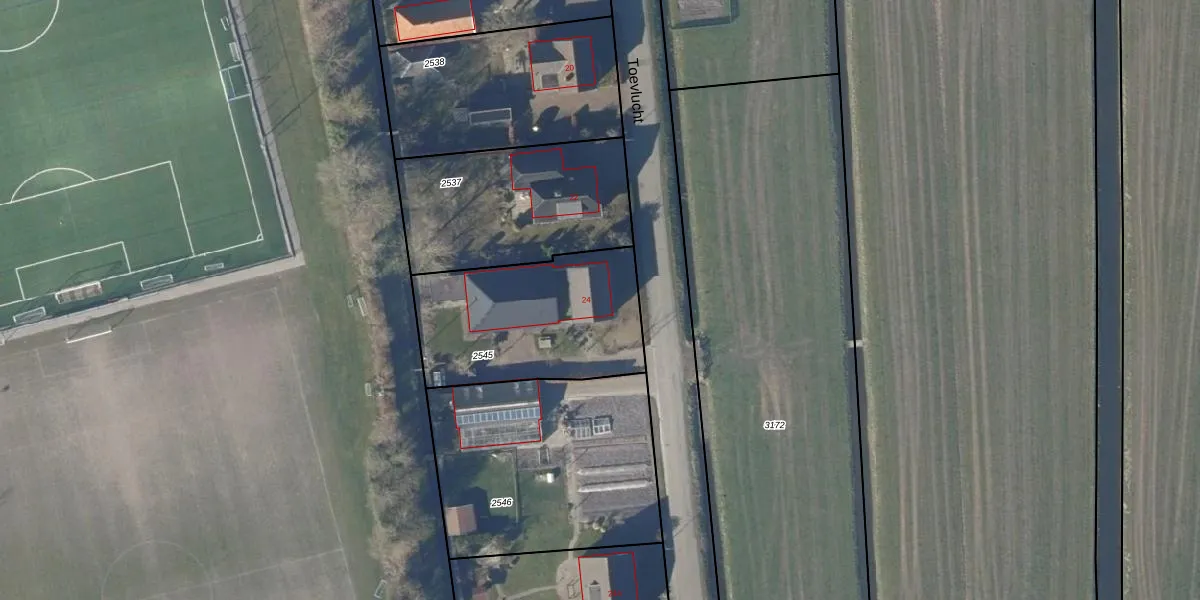 Toevlucht 24 is gelegen op kadastraal perceel OMR01F2545. Deze kadastrale aanduiding is uniek en wordt gebruikt door het Kadaster om eigendomsrechten en andere zakelijke rechten vast te leggen. Het perceel maakt onderdeel uit van de kadastrale gemeente Opmeer.