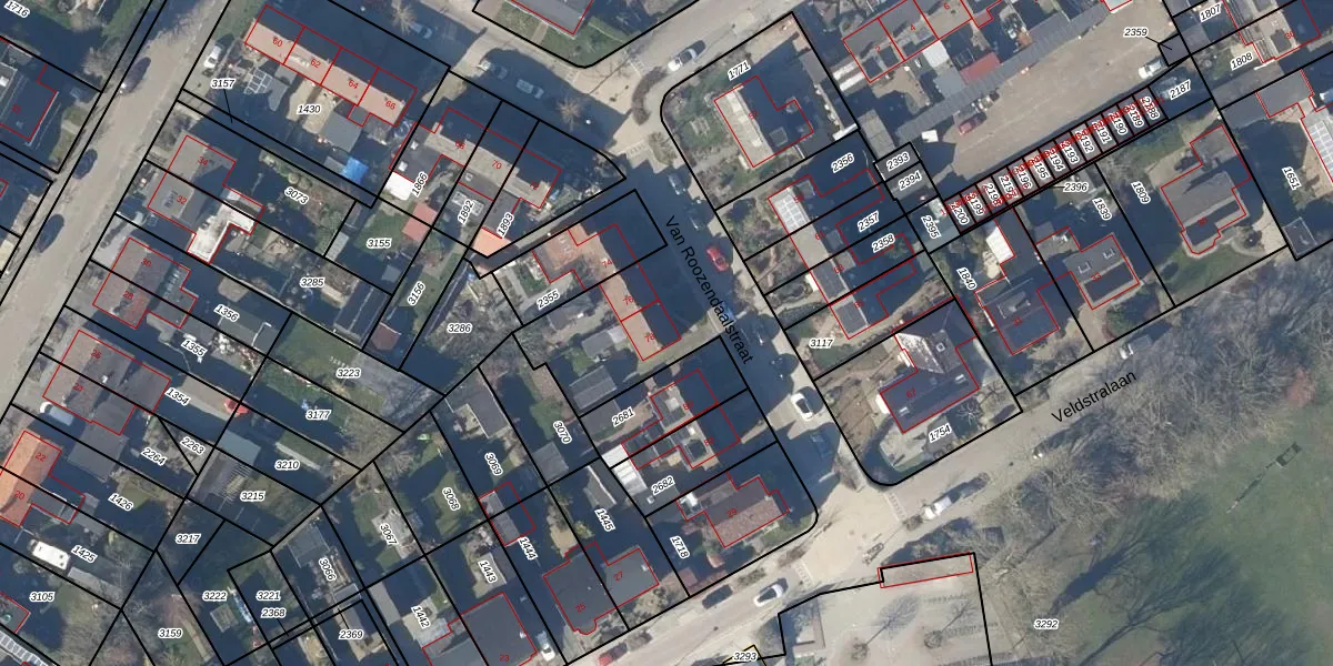 Het perceel waarop Van Roozendaalstraat 78 staat heeft een oppervlakte van 2,1 ha. Dit is een zeer groot perceel. De perceeloppervlakte wordt geregistreerd door het Kadaster. Gedetailleerde informatie over de maten van dit perceel kunt u vinden in het rapport Kadastrale kaart met maatvoering van Van Roozendaalstraat 78.