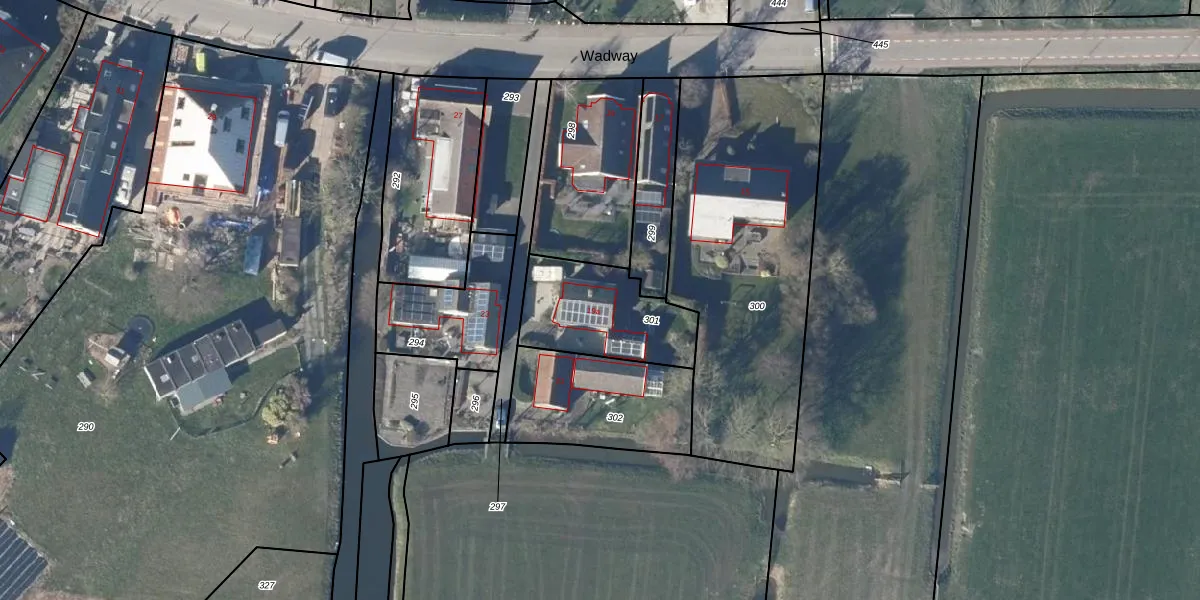 Het perceel waarop Wadway 19-a staat heeft een oppervlakte van 395 m². Dit is een groot perceel. De perceeloppervlakte wordt geregistreerd door het Kadaster. Gedetailleerde informatie over de maten van dit perceel kunt u vinden in het rapport Kadastrale kaart met maatvoering van Wadway 19-a.