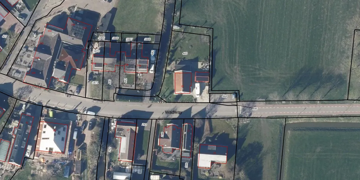 Het perceel waarop Wadway 20 staat heeft een oppervlakte van 930 m². Dit is een groot perceel. De perceeloppervlakte wordt geregistreerd door het Kadaster. Gedetailleerde informatie over de maten van dit perceel kunt u vinden in het rapport Kadastrale kaart met maatvoering van Wadway 20.
