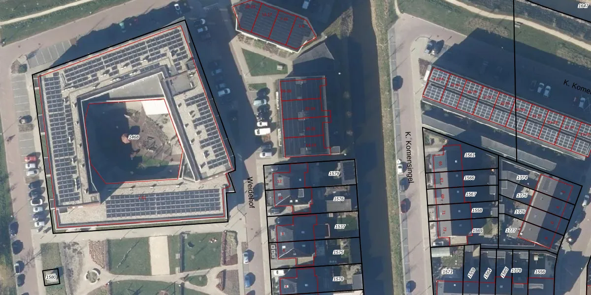 Het perceel waarop Weidehof 14 staat heeft een oppervlakte van 4,8 ha. Dit is een zeer groot perceel. De perceeloppervlakte wordt geregistreerd door het Kadaster. Gedetailleerde informatie over de maten van dit perceel kunt u vinden in het rapport Kadastrale kaart met maatvoering van Weidehof 14.