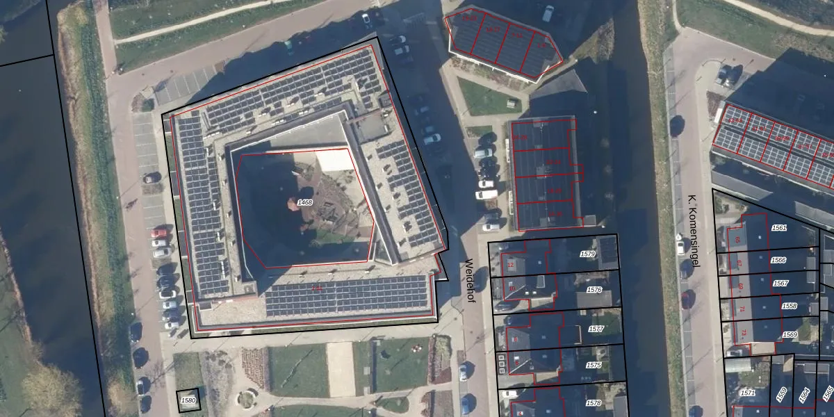 Het perceel waarop Weidehof 3-c staat heeft een oppervlakte van 3738 m². Dit is een zeer groot perceel. De perceeloppervlakte wordt geregistreerd door het Kadaster. Gedetailleerde informatie over de maten van dit perceel kunt u vinden in het rapport Kadastrale kaart met maatvoering van Weidehof 3-c.