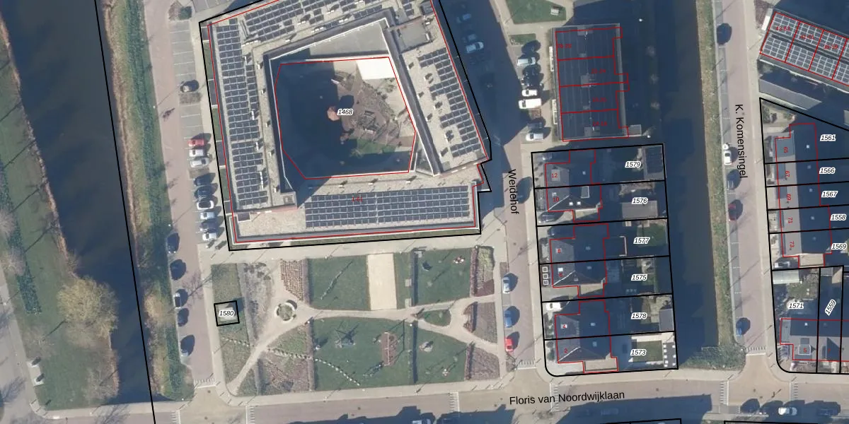 Het adres is gelegen op perceel 1468 in de sectie X en de kadastrale gemeente Opmeer. De kadastrale aanduiding is aldus OMR01-X-1468. Het perceel is 3738 m² groot. Dat is kleiner dan de gemiddelde perceeloppervlakte in Opmeer, dat op 5364,98 m² ligt. Het kleinste perceel in de kadastrale gemeente is 0 m² groot. De grootste perceeloppervlakte is 39,0 ha. Op het perceel liggen in totaal 67 adressen. In de Basisregistratie Kadaster (BRK) werden de grenzen van het perceel geregistreerd op 10-06-2021.