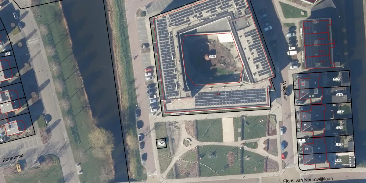 Het perceel waarop Weidehof 61 staat heeft een oppervlakte van 3738 m². Dit is een zeer groot perceel. De perceeloppervlakte wordt geregistreerd door het Kadaster. Gedetailleerde informatie over de maten van dit perceel kunt u vinden in het rapport Kadastrale kaart met maatvoering van Weidehof 61.