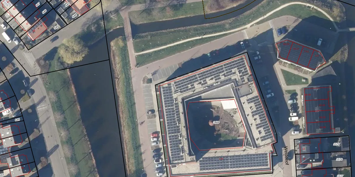 Het perceel waarop Weidehof 9 staat heeft een oppervlakte van 3738 m². Dit is een zeer groot perceel. De perceeloppervlakte wordt geregistreerd door het Kadaster. Gedetailleerde informatie over de maten van dit perceel kunt u vinden in het rapport Kadastrale kaart met maatvoering van Weidehof 9.