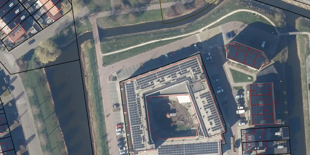 Het perceel waarop Weidehof 9-c staat heeft een oppervlakte van 3738 m². Dit is een zeer groot perceel. De perceeloppervlakte wordt geregistreerd door het Kadaster. Gedetailleerde informatie over de maten van dit perceel kunt u vinden in het rapport Kadastrale kaart met maatvoering van Weidehof 9-c.
