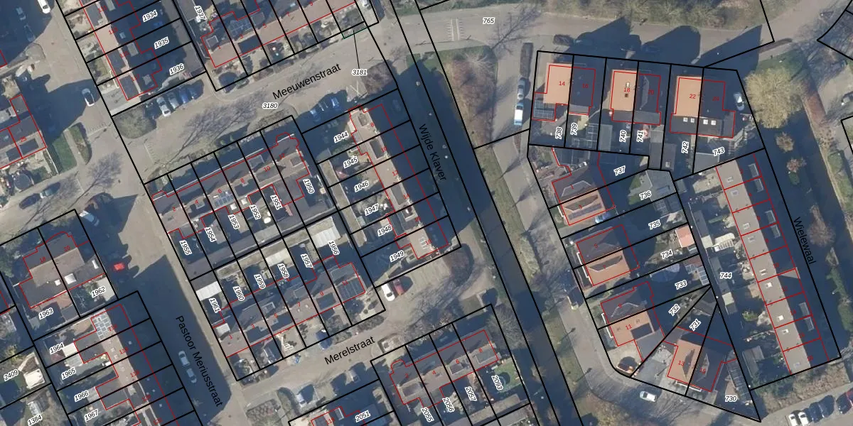 Gebruik de zoekbalk of klik op een perceel voor informatie over de adressen binnen dit perceel.