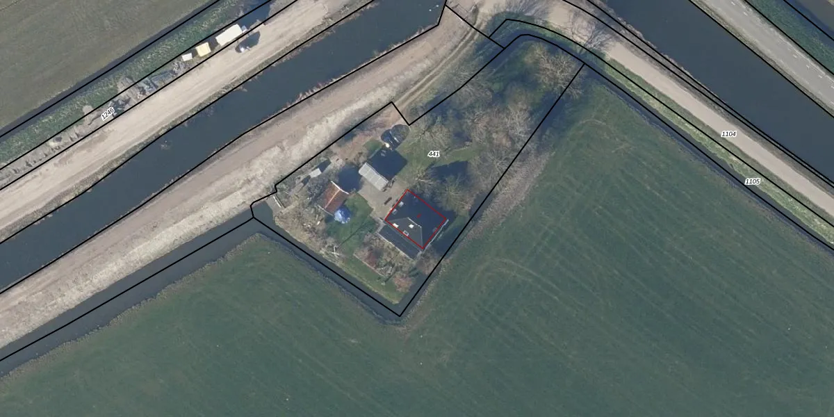 Het adres is gelegen op perceel 441 in de sectie V en de kadastrale gemeente Opmeer. De kadastrale aanduiding is aldus OMR01-V-441. Het perceel is 2250 m² groot. Dat is kleiner dan de gemiddelde perceeloppervlakte in Opmeer, dat op 5374,6 m² ligt. Het grootste perceel in de kadastrale gemeente is 39,0 ha. Het kleinste perceel heeft een oppervlakte van 0 m². Dit is het enige adres dat aanwezig is op het perceel. De huidige grenzen van het perceel zijn digitaal in de Basisregistratie Kadaster (BRK) geregistreerd op 25-03-2005.