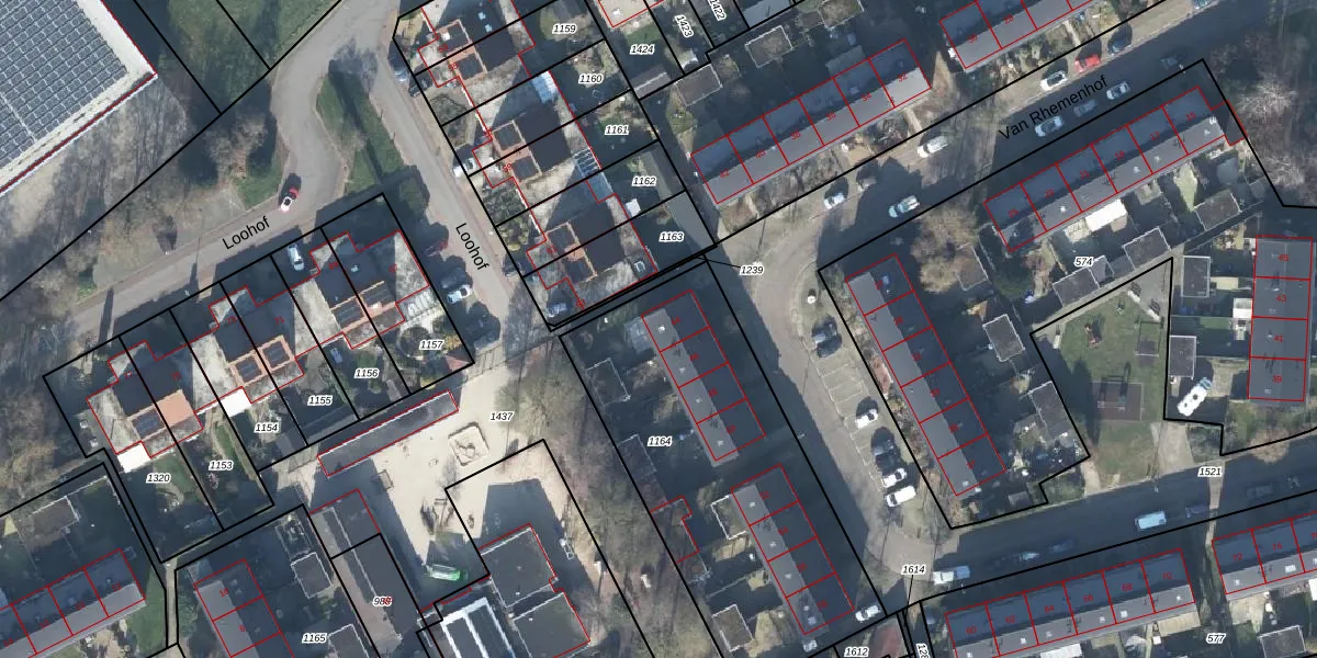 Het perceel waarop Van Rhemenhof 44 staat heeft een oppervlakte van 1510 m². Dit is een zeer groot perceel. De perceeloppervlakte wordt geregistreerd door het Kadaster. Gedetailleerde informatie over de maten van dit perceel kunt u vinden in het rapport Kadastrale kaart met maatvoering van Van Rhemenhof 44.