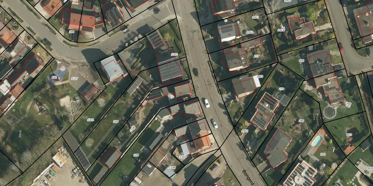 Het perceel waarop Bongerd 39 staat heeft een oppervlakte van 792 m². Dit is een groot perceel. De perceeloppervlakte wordt geregistreerd door het Kadaster. Gedetailleerde informatie over de maten van dit perceel kunt u vinden in het rapport Kadastrale kaart met maatvoering van Bongerd 39.