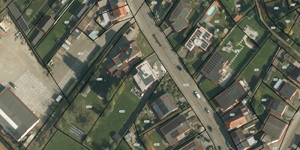 Het perceel waarop Bongerd 49 staat heeft een oppervlakte van 1518 m². Dit is een zeer groot perceel. De perceeloppervlakte wordt geregistreerd door het Kadaster. Gedetailleerde informatie over de maten van dit perceel kunt u vinden in het rapport Kadastrale kaart met maatvoering van Bongerd 49.
