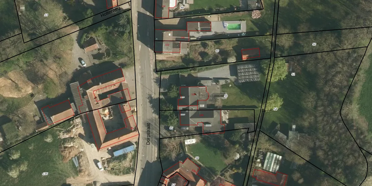 Het perceel waarop Dorpstraat 124 staat heeft een oppervlakte van 1405 m². Dit is een zeer groot perceel. De perceeloppervlakte wordt geregistreerd door het Kadaster. Gedetailleerde informatie over de maten van dit perceel kunt u vinden in het rapport Kadastrale kaart met maatvoering van Dorpstraat 124.