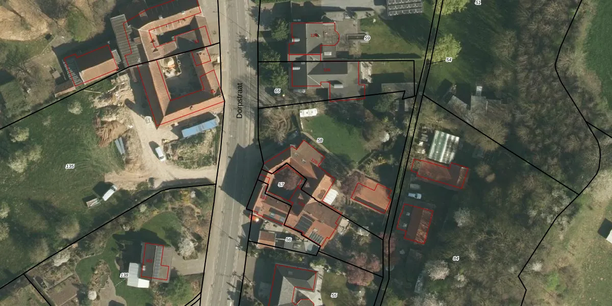 Het perceel waarop Dorpstraat 128 staat heeft een oppervlakte van 1560 m². Dit is een zeer groot perceel. De perceeloppervlakte wordt geregistreerd door het Kadaster. Gedetailleerde informatie over de maten van dit perceel kunt u vinden in het rapport Kadastrale kaart met maatvoering van Dorpstraat 128.