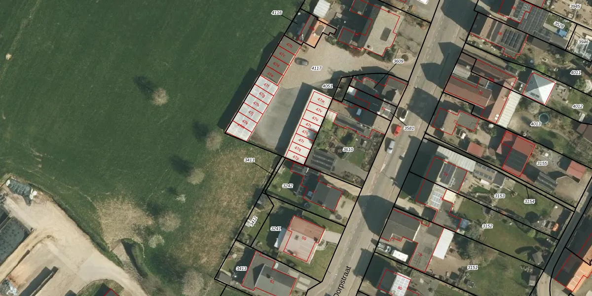 Het perceel waarop Dorpstraat 47-q staat heeft een oppervlakte van 1895 m². Dit is een zeer groot perceel. De perceeloppervlakte wordt geregistreerd door het Kadaster. Gedetailleerde informatie over de maten van dit perceel kunt u vinden in het rapport Kadastrale kaart met maatvoering van Dorpstraat 47-q.