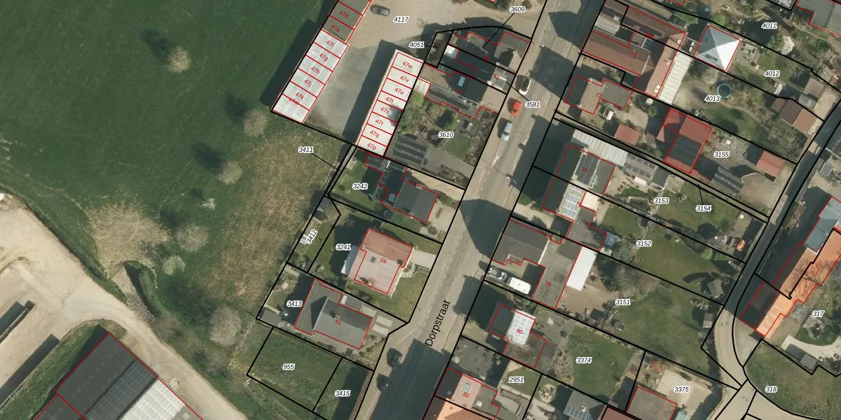 Dorpstraat 57 is gelegen op kadastraal perceel SBK03B3242. Deze kadastrale aanduiding is uniek en wordt gebruikt door het Kadaster om eigendomsrechten en andere zakelijke rechten vast te leggen. Het perceel maakt onderdeel uit van de kadastrale gemeente Spaubeek.
