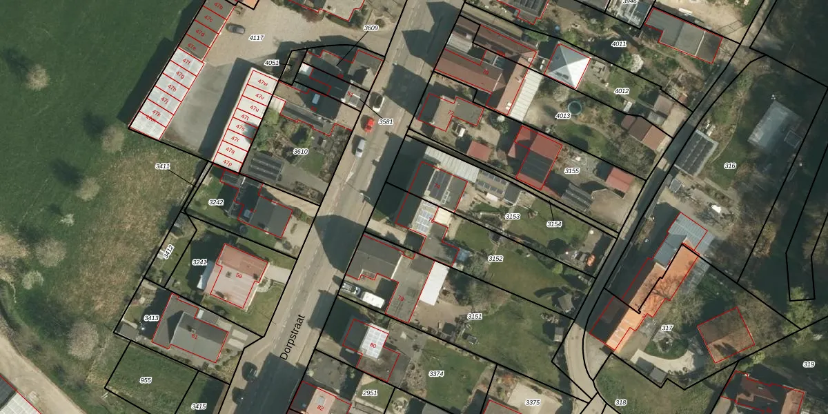 Dorpstraat 76 is gelegen op kadastraal perceel SBK03B3152. Deze kadastrale aanduiding is uniek en wordt gebruikt door het Kadaster om eigendomsrechten en andere zakelijke rechten vast te leggen. Het perceel maakt onderdeel uit van de kadastrale gemeente Spaubeek.