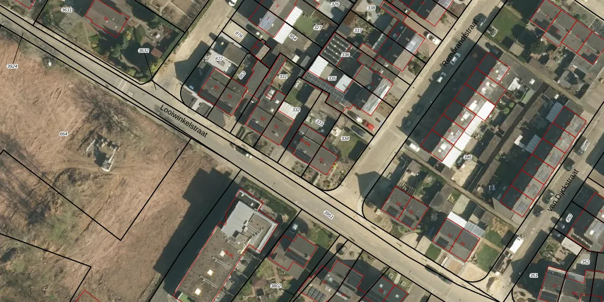 Het perceel waarop Looiwinkelstraat 59 staat heeft een oppervlakte van 222 m². Dit is een middelgroot perceel. De perceeloppervlakte wordt geregistreerd door het Kadaster. Gedetailleerde informatie over de maten van dit perceel kunt u vinden in het rapport Kadastrale kaart met maatvoering van Looiwinkelstraat 59.