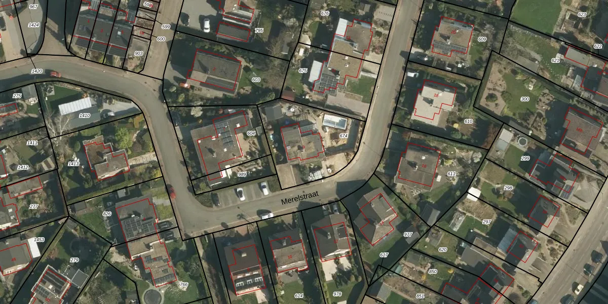 Het perceel waarop Merelstraat 9 staat heeft een oppervlakte van 695 m². Dit is een groot perceel. De perceeloppervlakte wordt geregistreerd door het Kadaster. Gedetailleerde informatie over de maten van dit perceel kunt u vinden in het rapport Kadastrale kaart met maatvoering van Merelstraat 9.