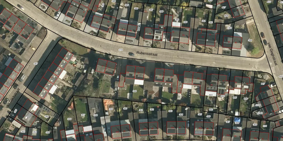 Rubensstraat 15 is gelegen op kadastraal perceel SBK03C348. Deze kadastrale aanduiding is uniek en wordt gebruikt door het Kadaster om eigendomsrechten en andere zakelijke rechten vast te leggen. Het perceel maakt onderdeel uit van de kadastrale gemeente Spaubeek.