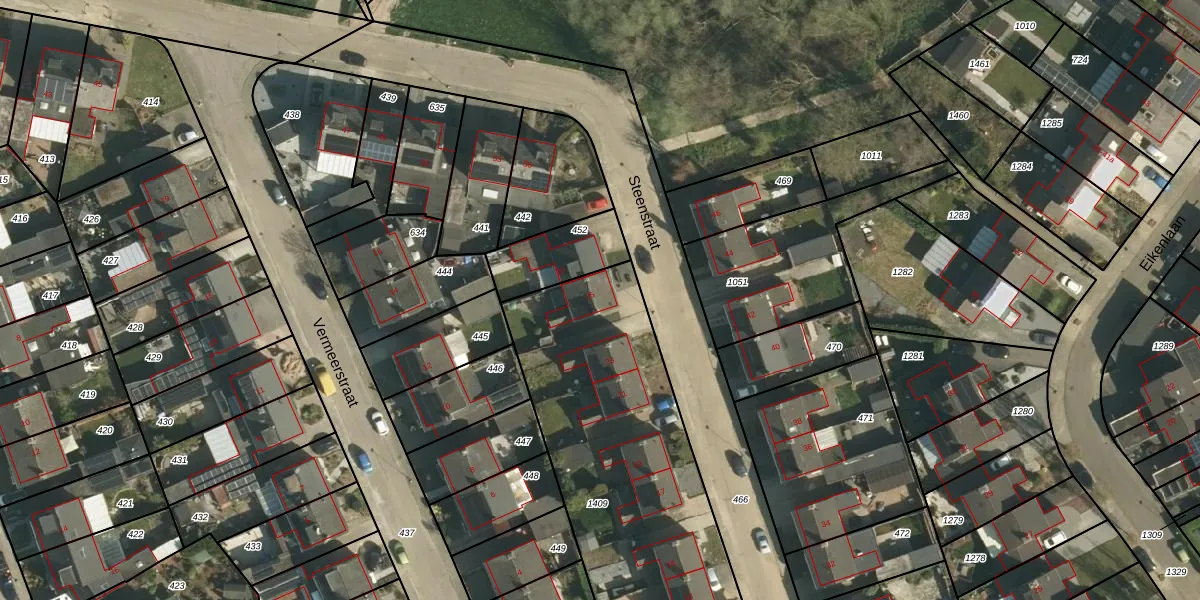 Het perceel waarop Steenstraat 25 staat heeft een oppervlakte van 1425 m². Dit is een zeer groot perceel. De perceeloppervlakte wordt geregistreerd door het Kadaster. Gedetailleerde informatie over de maten van dit perceel kunt u vinden in het rapport Kadastrale kaart met maatvoering van Steenstraat 25.