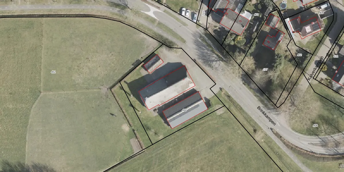 Brinkkampen 2 is gelegen op kadastraal perceel BLN00Q450. Deze kadastrale aanduiding is uniek en wordt gebruikt door het Kadaster om eigendomsrechten en andere zakelijke rechten vast te leggen. Het perceel maakt onderdeel uit van de kadastrale gemeente Beilen.