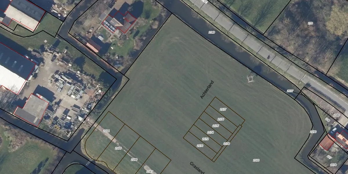 Het perceel waarop Achterland 7 staat heeft een oppervlakte van 1,0 ha. Dit is een zeer groot perceel. De perceeloppervlakte wordt geregistreerd door het Kadaster. Gedetailleerde informatie over de maten van dit perceel kunt u vinden in het rapport Kadastrale kaart met maatvoering van Achterland 7.
