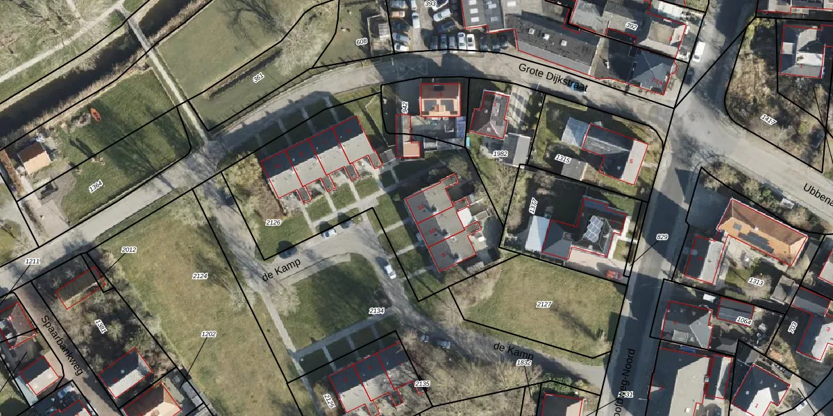 Het perceel waarop de Kamp 12 staat heeft een oppervlakte van 1846 m². Dit is een zeer groot perceel. De perceeloppervlakte wordt geregistreerd door het Kadaster. Gedetailleerde informatie over de maten van dit perceel kunt u vinden in het rapport Kadastrale kaart met maatvoering van de Kamp 12.