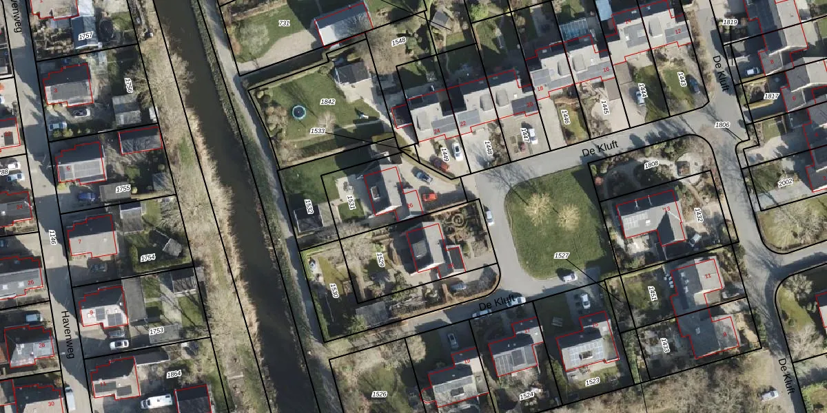 Het perceel waarop De Kluft 26 staat heeft een oppervlakte van 448 m². Dit is een groot perceel. De perceeloppervlakte wordt geregistreerd door het Kadaster. Gedetailleerde informatie over de maten van dit perceel kunt u vinden in het rapport Kadastrale kaart met maatvoering van De Kluft 26.