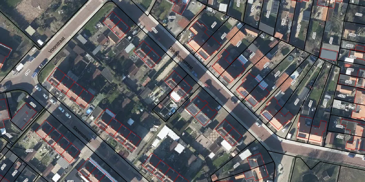Gebruik de zoekbalk of klik op een perceel voor informatie over de adressen binnen dit perceel.