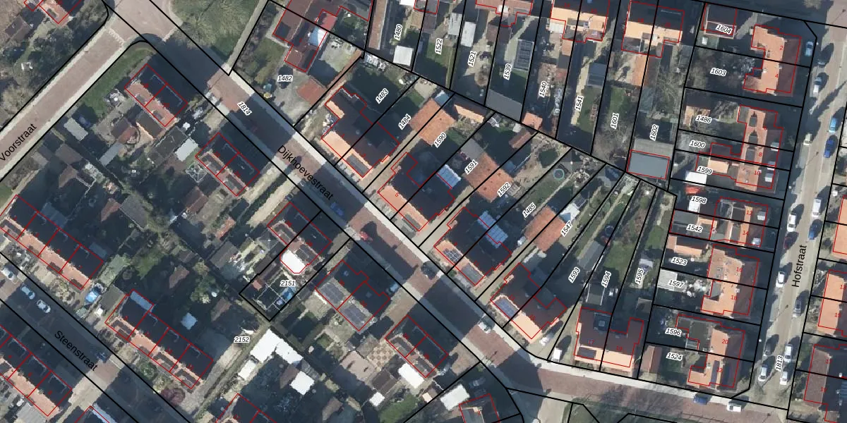 Het perceel waarop Dijkhoevestraat 7 staat heeft een oppervlakte van 363 m². Dit is een groot perceel. De perceeloppervlakte wordt geregistreerd door het Kadaster. Gedetailleerde informatie over de maten van dit perceel kunt u vinden in het rapport Kadastrale kaart met maatvoering van Dijkhoevestraat 7.