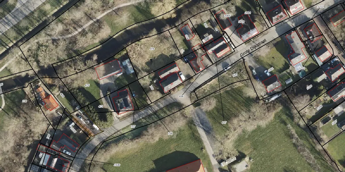 Het perceel waarop Grote Dijkstraat 26 staat heeft een oppervlakte van 490 m². Dit is een groot perceel. De perceeloppervlakte wordt geregistreerd door het Kadaster. Gedetailleerde informatie over de maten van dit perceel kunt u vinden in het rapport Kadastrale kaart met maatvoering van Grote Dijkstraat 26.