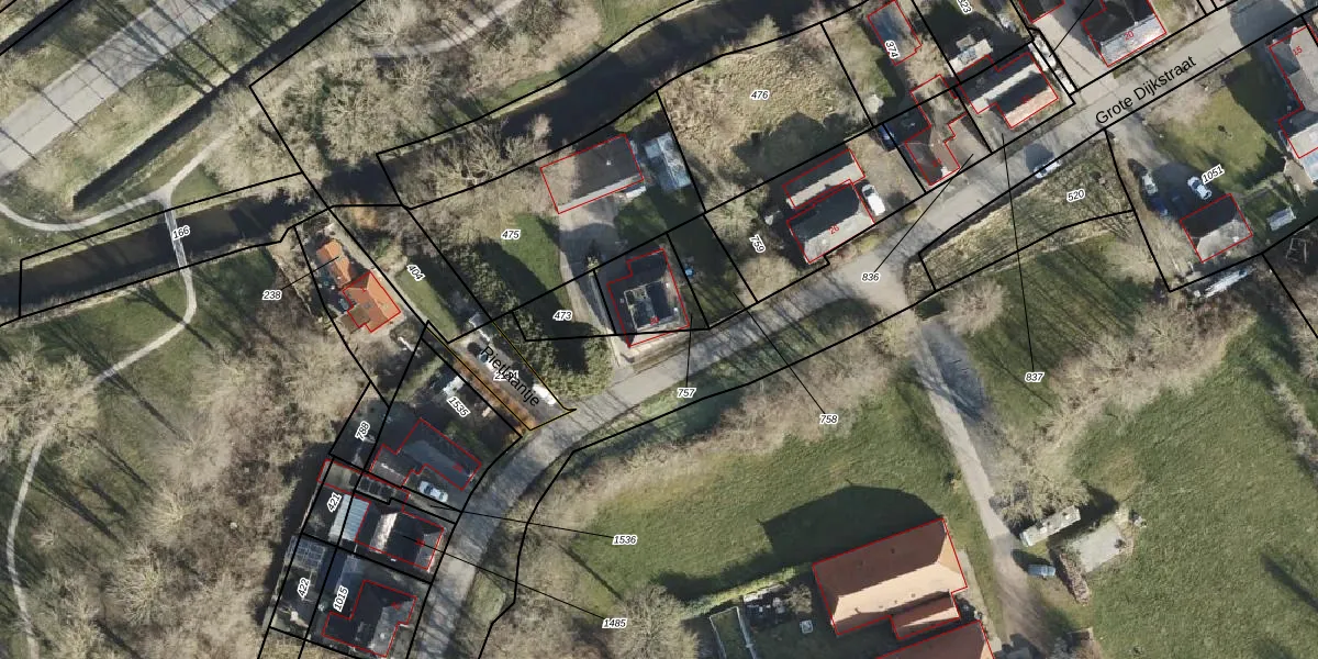 Gebruik de zoekbalk of klik op een perceel voor informatie over de adressen binnen dit perceel.