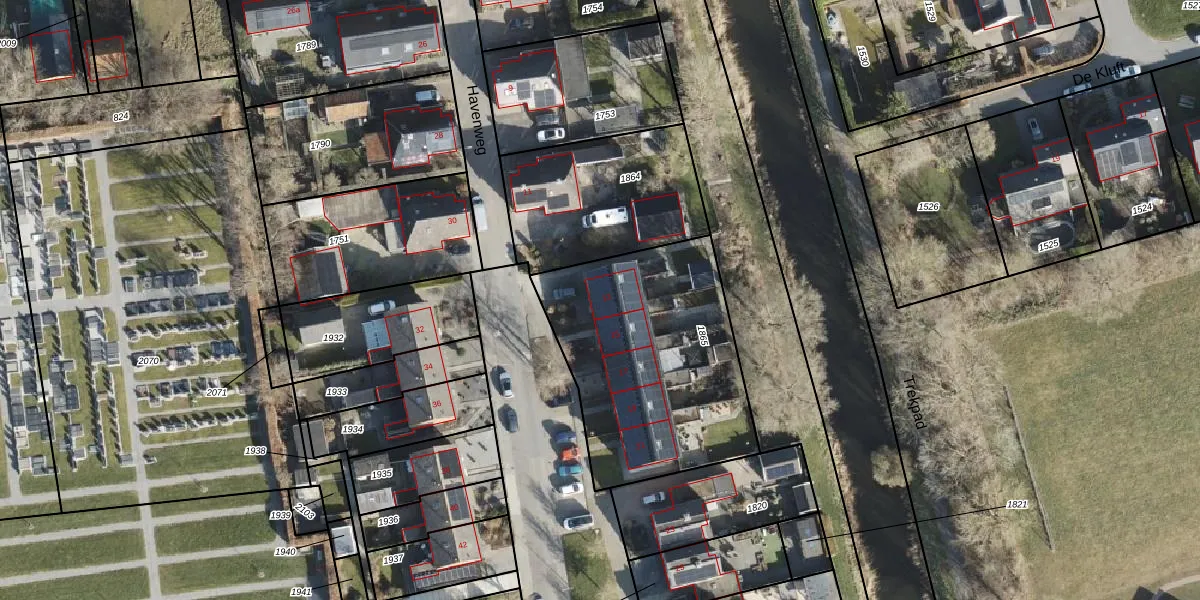 Het perceel waarop Havenweg 13 staat heeft een oppervlakte van 1043 m². Dit is een zeer groot perceel. De perceeloppervlakte wordt geregistreerd door het Kadaster. Gedetailleerde informatie over de maten van dit perceel kunt u vinden in het rapport Kadastrale kaart met maatvoering van Havenweg 13.