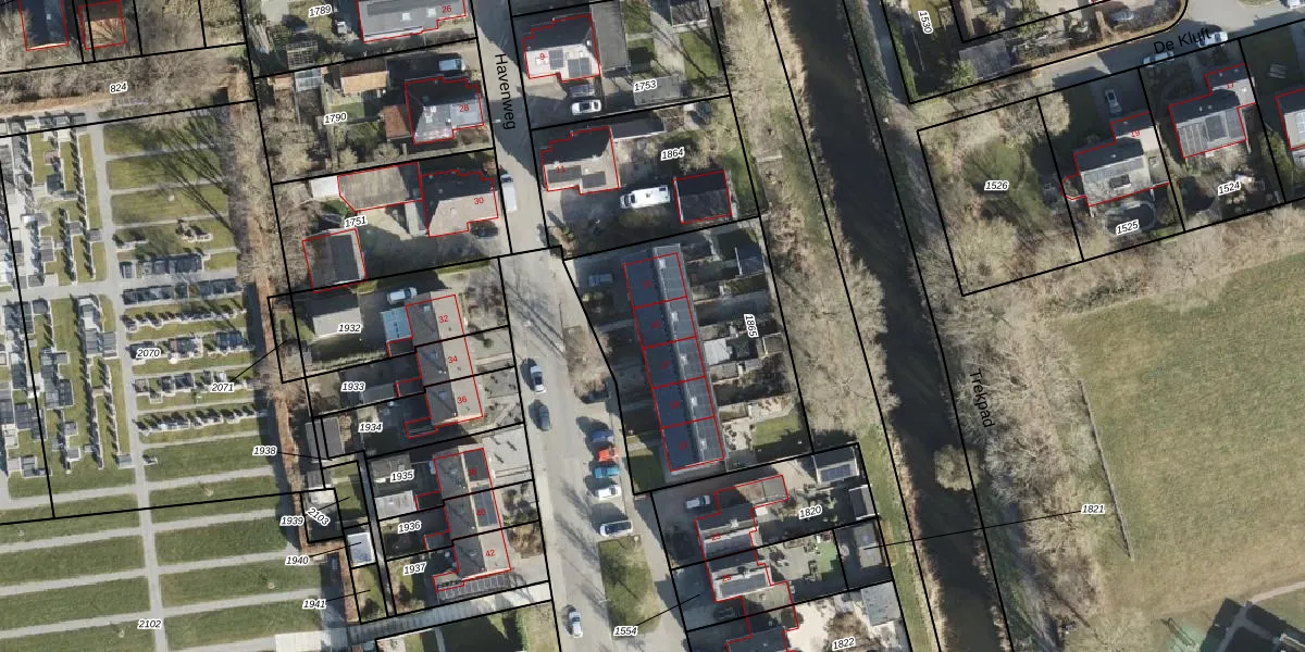 Het perceel waarop Havenweg 15 staat heeft een oppervlakte van 1043 m². Dit is een zeer groot perceel. De perceeloppervlakte wordt geregistreerd door het Kadaster. Gedetailleerde informatie over de maten van dit perceel kunt u vinden in het rapport Kadastrale kaart met maatvoering van Havenweg 15.