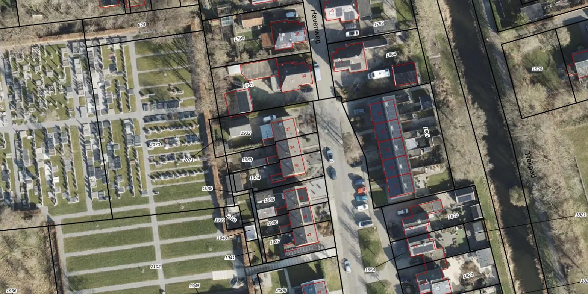 Gebruik de zoekbalk of klik op een perceel voor informatie over de adressen binnen dit perceel.