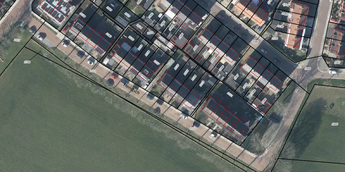 Het perceel waarop Herispich 19 staat heeft een oppervlakte van 174 m². Dit is een middelgroot perceel. De perceeloppervlakte wordt geregistreerd door het Kadaster. Gedetailleerde informatie over de maten van dit perceel kunt u vinden in het rapport Kadastrale kaart met maatvoering van Herispich 19.