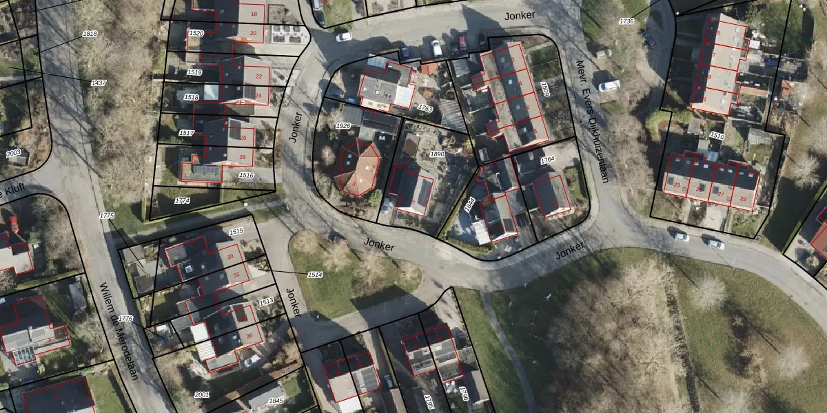 Het perceel waarop Jonker 7 staat heeft een oppervlakte van 459 m². Dit is een groot perceel. De perceeloppervlakte wordt geregistreerd door het Kadaster. Gedetailleerde informatie over de maten van dit perceel kunt u vinden in het rapport Kadastrale kaart met maatvoering van Jonker 7.