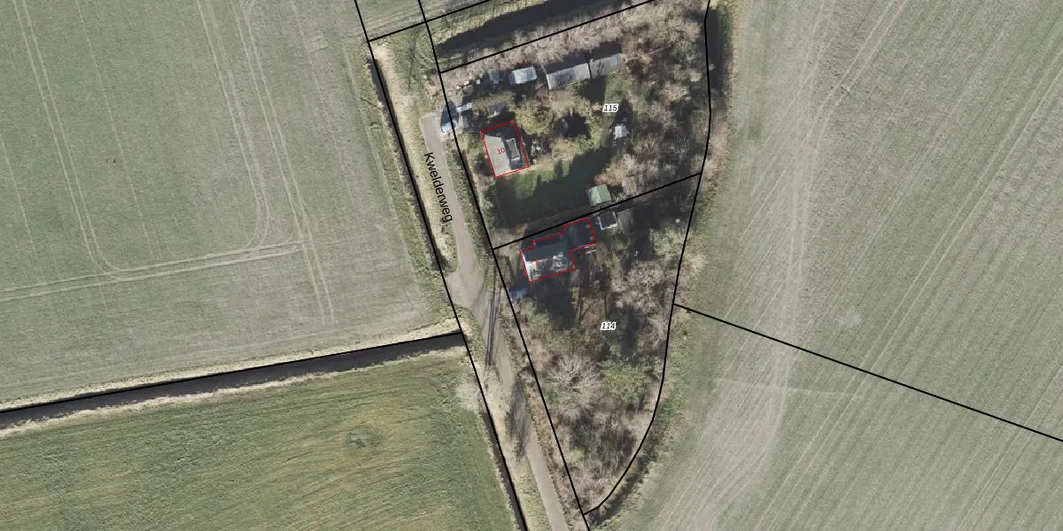 Het perceel waarop Kwelderweg 8 staat heeft een oppervlakte van 1350 m². Dit is een zeer groot perceel. De perceeloppervlakte wordt geregistreerd door het Kadaster. Gedetailleerde informatie over de maten van dit perceel kunt u vinden in het rapport Kadastrale kaart met maatvoering van Kwelderweg 8.