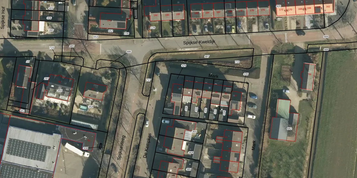 Het adres ligt op het perceel VRN00-O-329, dat zich in de kadastrale gemeente Vuren bevindt. Het perceel is 201 m² groot. Dat is kleiner dan de gemiddelde perceeloppervlakte in Vuren, dat op 8255,97 m² ligt. Het kleinste perceel in de kadastrale gemeente is 0 m² groot. De grootste perceeloppervlakte is 31,9 ha. Dit is het enige adres dat aanwezig is op het perceel. De huidige grenzen van het perceel zijn digitaal in de Basisregistratie Kadaster (BRK) geregistreerd op 27-05-2003.