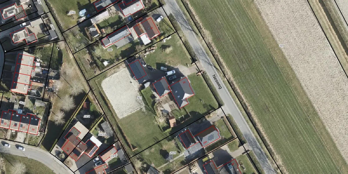 Het perceel waarop Nesweg 26 staat heeft een oppervlakte van 3030 m². Dit is een zeer groot perceel. De perceeloppervlakte wordt geregistreerd door het Kadaster. Gedetailleerde informatie over de maten van dit perceel kunt u vinden in het rapport Kadastrale kaart met maatvoering van Nesweg 26.