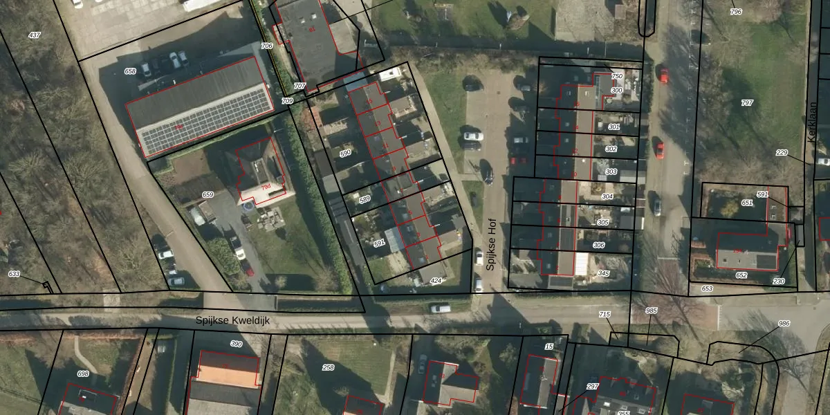 Het perceel waarop Spijkse Hof 5 staat heeft een oppervlakte van 441 m². Dit is een groot perceel. De perceeloppervlakte wordt geregistreerd door het Kadaster. Gedetailleerde informatie over de maten van dit perceel kunt u vinden in het rapport Kadastrale kaart met maatvoering van Spijkse Hof 5.